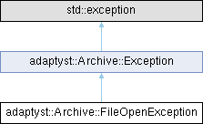 Inheritance diagram for adaptyst::Archive::FileOpenException: